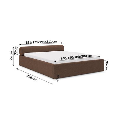 160x200 cm, ar veļas kasti, ar redelēm, polsterēta, no šenila auduma, brūna