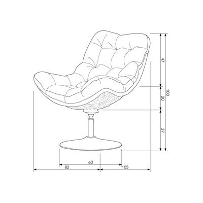 Krēsla kopējais augstums: 100 cm, platums: 82 cm un dziļums 105 cm.