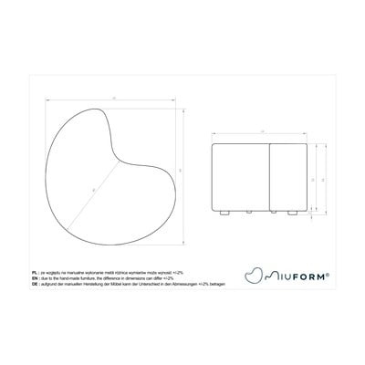 "Miuf" pufs lieliski atspoguļo Miuform zīmolu. Tā dizaina pamatā ir paša zīmola logotips. Pateicoties patīkamajai virsmai un neitrālajai krāsai, to var viegli pieskaņot jebkuram interjeram. To var izmantot kā kāju soliņu vai kā nelielu galdiņu.