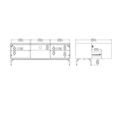 Šim 147 cm platajam galdiņam ar ozolkoka imitāciju ir daudz vietas, pateicoties diviem skapīšiem ar regulējamiem plauktiem un vienai atvilktnei. Atvērtā vidusdaļa nodrošina vieglu piekļuvi iekārtām, un kabeļu pārvadības sistēma nodrošina, ka viss ir sakārtots. Pateicoties metāla kājām un mūsdienīgam dizainam, tas iederas dažādos interjeros.