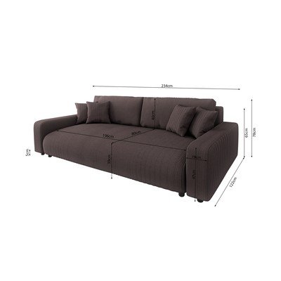 Velveta, salokāms/ar uzglabāšanas vietu, brūns, trīsvietīgs, platums 234 cm