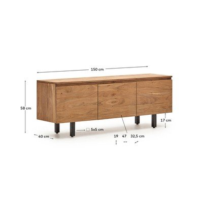 TV galdiņš UxueAkācijas masīvkoka, virsmas apdare: balināšana, ar matētu virsmu, dabīga toņa, platums 150 cm, augstums 58 cm, dziļums 40 cm