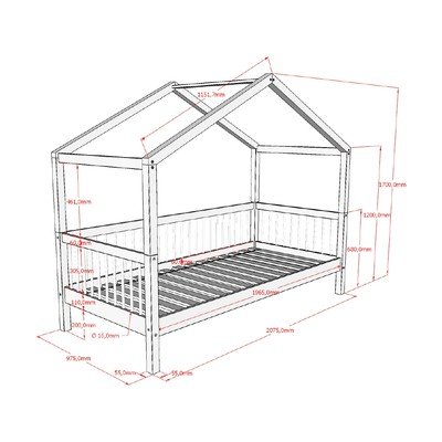 90x200 cm, mājas formā, ar redelēm, dižskābarža masīvkoka, virsmas apdare: lakošana, dabīga toņa