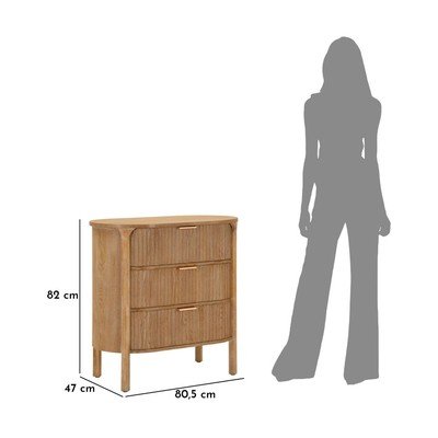 Mauro Ferretti kumode Gothenburg ir eleganta mēbele, kas jūsu interjeram piešķirs dabisku šarmu. Tā ir izgatavota no egles koka un pārsteidz ar savām noapaļotajām formām un trim ietilpīgām atvilktnēm.
