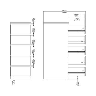 Tās izmēri ir 40x111x50 cm, un tā ir piemērota mazākām telpām. Sešas atvilktnes ar gludām tērauda sliedēm nodrošina pietiekami daudz vietas jūsu mantām. Vienkāršais dizains bez rokturiem piešķir kumodei mūsdienīgu izskatu un izceļ tās vienkāršību.