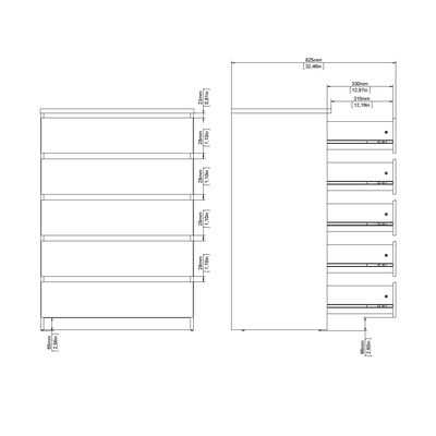 Piecās ietilpīgajās atvilktnēs uz tērauda lodīšu vadotnēm ir pietiekami daudz vietas jūsu mantām. Dabīgā ozolkoka imitācija piešķir kumodei dabisku izskatu, ko ir viegli iekļaut dažādos interjera stilos. Dizains bez rokturiem izceļ vienkāršās līnijas un mūsdienīgu estētiku.