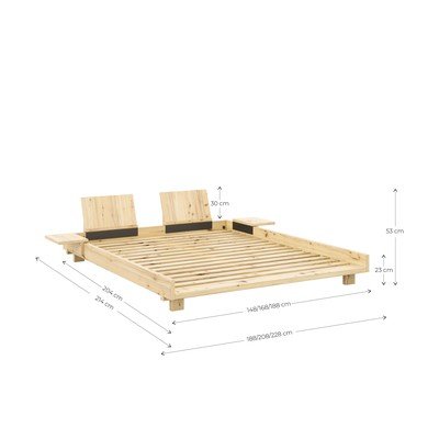 Divvietīga gulta Social Bed160x200 cm, ar redelēm, priedes masīvkoka, ar naktsskapīšiem, virsmas apdare: lazūra, dabīga toņa