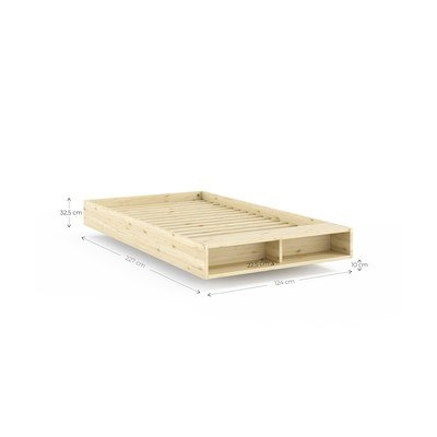 Vienvietīga gulta Merge120x200 cm, bez galvgaļa, ar redelēm, priedes masīvkoka, ar uzglabāšanas soliņu, japāņu, virsmas apdare: bez apstrādes, dabīga toņa