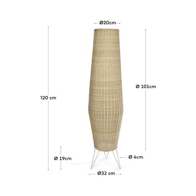 Ar rotangpalmas abažūru, dabīga toņa, augstums 120 cm
