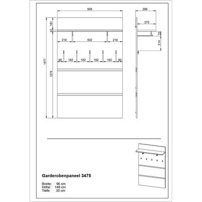 Sienas pakaramais LissabonAr dižskābarža koka imitāciju, no skaidu plāksnes, virsmas apdare: lamināts, dabīga toņa, platums 96 cm, augstums 147 cm, dziļums 30 cm
