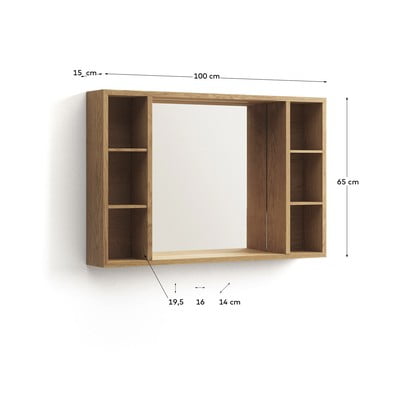Vannas istabas skapis ParanaPiekarams/ar spoguli, tīkkoka masīvkoka, virsmas apdare: lakošana, dabīga toņa, platums 100 cm, augstums 65 cm, dziļums 15 cm