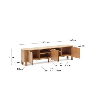 TV galdiņš SalayaAr oškoka imitāciju, no MDF, virsmas apdare: finieris/virsmas apdare: lakošana, dabīga toņa, platums 200 cm, augstums 52 cm, dziļums 40 cm