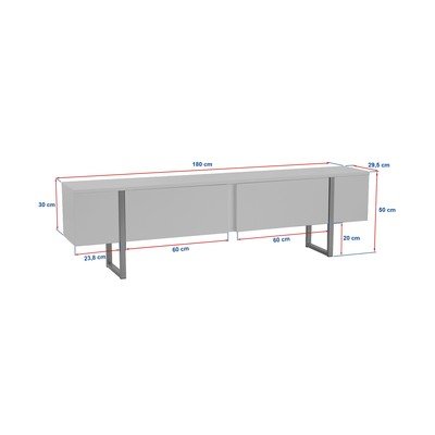 Ar priedes koka imitācijuNo skaidu plāksnesVirsmas apdare: melamīnsAr pusspīdīgu virsmuDabīga toņaPlatums 180 cmAugstums 50 cmDziļums 29,5 cm
