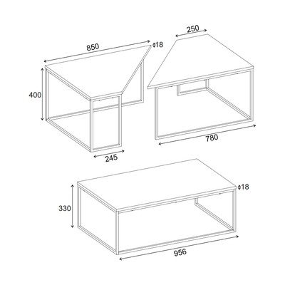 Žurnālgaldiņi ar ozolkoka imitācijas galda virsmu (3 gab.) 70x110 cm Titan – Marckeric