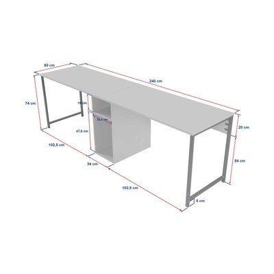 Matēts darba galds 60x240 cm Twin – Kalune Design