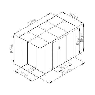Šī Rojaplast dārza mājiņa ir ideāli piemērota dārza darbarīku uzglabāšanai, kas jums vienmēr būs pa rokai. Turklāt tās nojume ir arī neatņemama dārza sastāvdaļa. To var samontēt tikai kreisajā pusē.