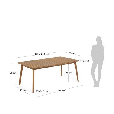 Dārza ēdamgalds HanzelMasīvkoka, izvelkams, dabīga toņa, 100x240 cm