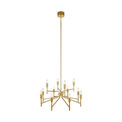 Metāla konstrukcija ar nedaudz regulējamiem 12 svirām atgādina klasiskas sveču lustras formu. Jūs varat izvēlēties, vai dodat priekšroku mūsdienu tendencēm un izmantojat apaļas spuldzes, vai arī pieturēties pie tradicionālās formas un izvēlēties spuldzes ar iegarenu galu.