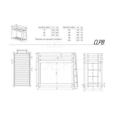 90x190 cm, divstāvu, ar redelēm, priedes masīvkoka, virsmas apdare: bez apstrādes/virsmas apdare: pulēšana ar birsti, dabīga toņa