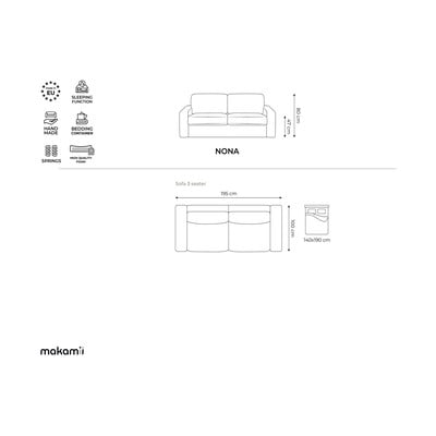 Gaiši pelēks velveta salokāms dīvāns 195 cm Nona – Makamii