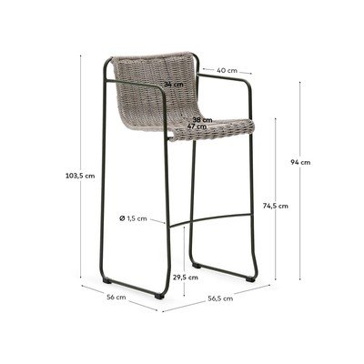 Zīmola Kave Home bāra krēsls Maurina ir stilīgs papildinājums āra sēdvietām. To ekskluzīvi zīmolam Kave Home ir izstrādājusi dizaina studija Yonoh.