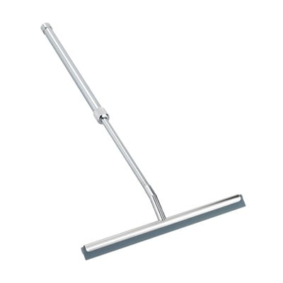 Ērts teleskopiskais vējstikla tīrītājs. Piemērots ūdens novadīšanai no stikla augšējām daļām, bet slikti novada pie grīdas (terases durvis, dušas stik...