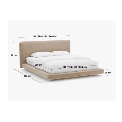 200x200 cm, polsterēta, samta, gaiši brūna