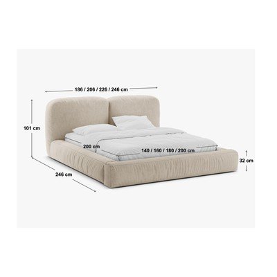 Bēša polsterēta divvietīga gulta ar veļas kasti un redelēm 200x200 cm Martina – Micadoni