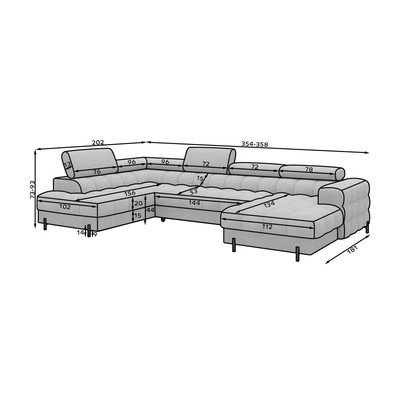 Samta, regulējams/salokāms, ar kreiso stūri/U veida, gaiši brūns, vairākvietīgs, platums 358 cm