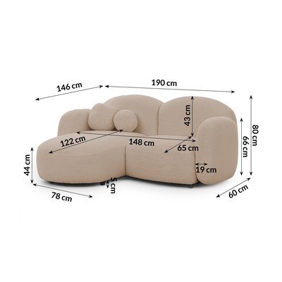 Krēmkrāsas stūra dīvāns no buklē auduma (ar kreiso stūri/ar zvilni) Orbit – Ropez