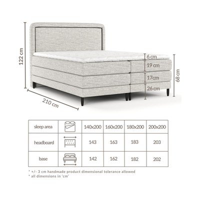 Šī atsperu gulta nodrošina nevainojamu komfortu, pateicoties divu veidu matračiem četrās atsevišķās daļās. Apakšējais matracis ar augstumu 17 cm sastāv no Bonell atsperēm un poliuretāna putām, bet augšējais matracis ar augstumu 19 cm ir izgatavots no kabatas atsperēm, kas izvietotas atsevišķās kabatās.