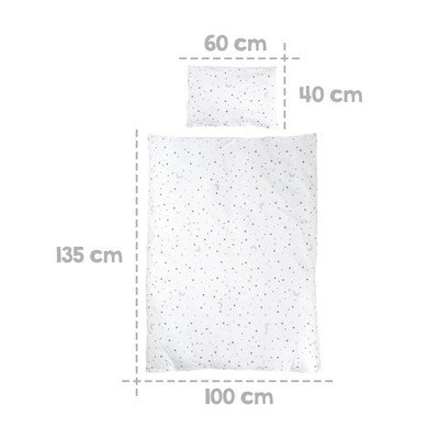 Piezīme: komplektā ietilpst matracis, ligzda, 100% kokvilnas gultas veļa un baldahīns ar pieskaņotu stabu.