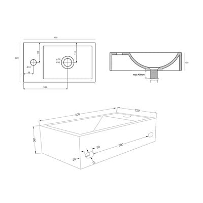 Betona, gaiši pelēka, platums 40 cm, dziļums 22 cm, augstums 10 cm