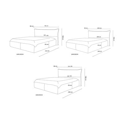 180x200 cmAr veļas kastiAr redelēmPolsterētaSamtaAr augsta blīvuma putāmGaiši pelēka