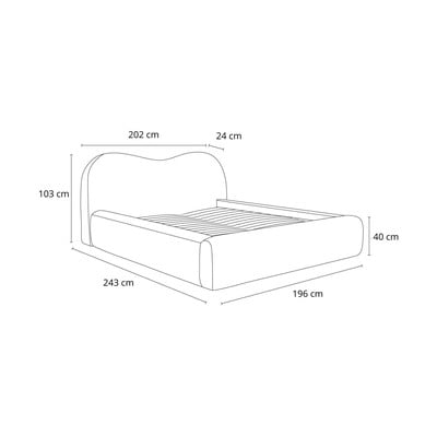 160x200 cm, ar veļas kasti, ar redelēm, polsterēta, no buklē auduma, gaiši pelēka