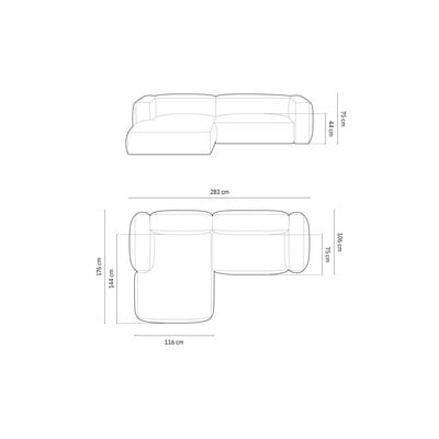 Modulārais stūra dīvāns MartinaNo šenila auduma, ar kreiso stūri/ar zvilni, pelēks, četrvietīgs, platums 280 cm