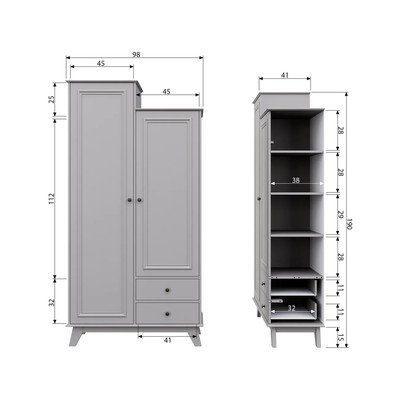 Priedes masīvkoka, gaiši pelēks, platums 98 cm, augstums 190 cm, dziļums 41 cm
