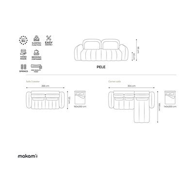 Gaiši pelēks salokāms stūra dīvāns no buklē auduma ar uzglabāšanas vietu (ar labo stūri/ar zvilni) Pele – Makamii