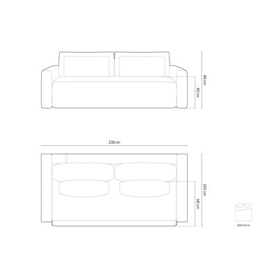 Samta, salokāms/ar uzglabāšanas vietu, ūdensizturīgs/mājdzīvniekiem piemērots, gaiši pelēks, trīsvietīgs, platums 238 cm