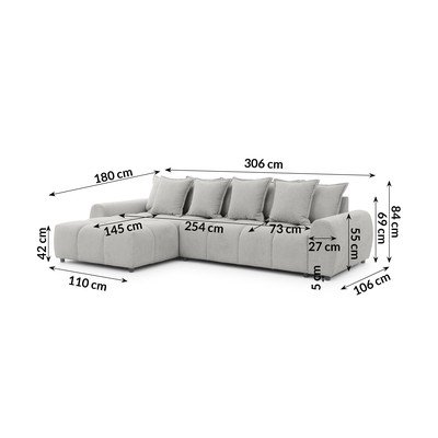 Pelēks stūra dīvāns (ar kreiso stūri/ar zvilni) Albane – Ropez