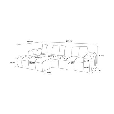 Ar kreiso stūri/ar zvilniGaiši pelēksTrīsvietīgsPlatums 272 cmDziļums 153 cmSēdekļa dziļums 54 cm