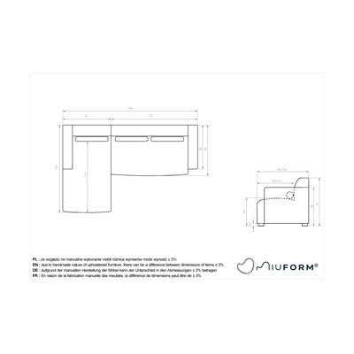 Ar kreiso stūri/ar zvilniGaiši pelēksTrīsvietīgsPlatums 264 cm