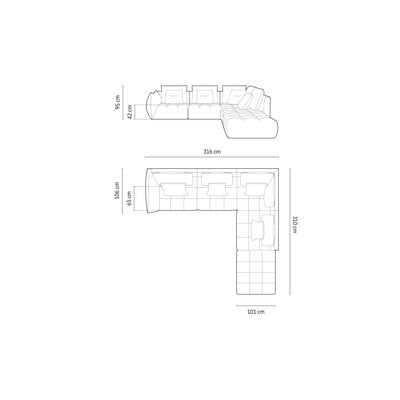 Ar labo stūri/L veida, pelēks, vairākvietīgs, platums 316 cm