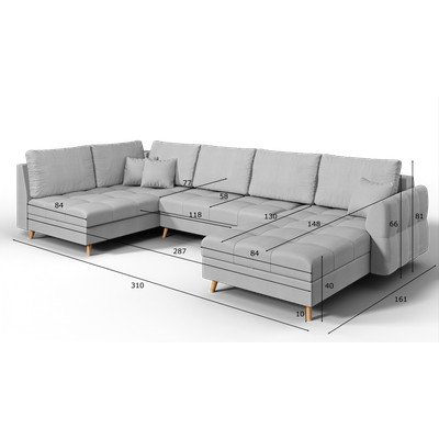 Ar labo stūri/U veida, pelēks, vairākvietīgs, platums 310 cm