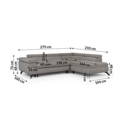 No šenila audumaRegulējams/salokāms/ar uzglabāšanas vietuAr labo stūri/L veidaGaiši pelēksMājdzīvniekiem piemērots/pret traipiem noturīgsČetrvietīgsPlatums 275 cm