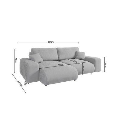 Velveta, ar labo stūri/ar kreiso stūri/ar maināmu stūri/ar zvilni, gaiši pelēks, trīsvietīgs, platums 237 cm