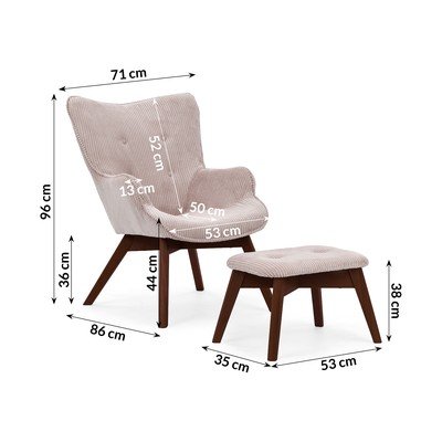 Gaiši rozā velveta atpūtas krēsls ar kāju balstu Niko – Ropez