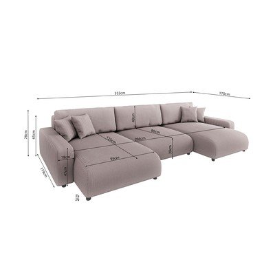 Velveta, salokāms/ar uzglabāšanas vietu, U veida, gaiši rozā, vairākvietīgs, platums 332 cm