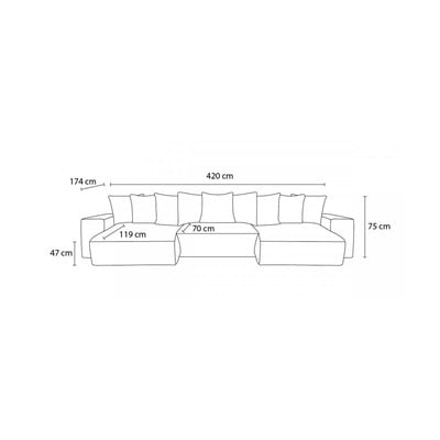 Velveta, U veida, rozā, vairākvietīgs, platums 420 cm