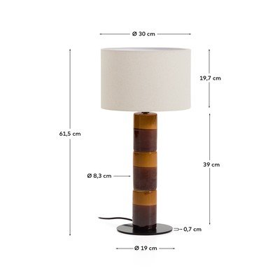 Mavran galda lampa no Kave Home var lepoties ar glazētu keramikas pamatni, kas veidota no mainīgām joslām. Tās slaidais vertikālais dizains jebkurai telpai piešķir dinamismu un personiskumu.
